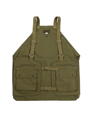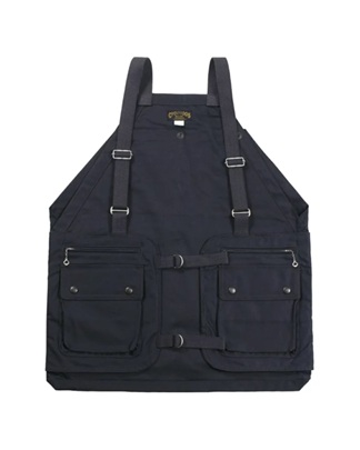ヴィンテージのハンティングベストやフィッシングベストをベースにバイカーテイストへと昇華させたユニークなベスト。最大の特徴でもある背中のゲームポケット(後にマップポケットと呼ばれることも)は約20ℓもの大容量。ツーリングやチョイ乗りの際の「突然の荷物」にも難なく対応可能です。生地は硫化染のオリジナルバックサテンを敢えて一重で縫製。前身のみ内側にコットンナイロンクロスを補強で充て、特徴的な複数のポケットや綿テープも生地と共に経年変化を楽しむことが出来ます。各部は手間のかかる工程で仕上げ、強度もしっかりと確保。ファッションとして楽しめるだけでなく、優れた実用性と利便性を持つ一枚は正に着るツールと呼ぶに相応しい。