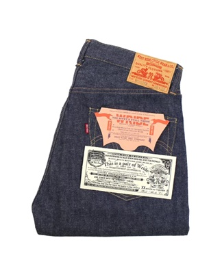 WH社の3州ブレンド糸のバナー・デニムによるセットアップは片面後期の1952年モデルで作り込んだXXとJXX。金茶を多用したレインボーステッチになり、ボトムはW1948XXと比較し、ややスッキリとした美しいシルエットを持つ極上の一本。コインポケットは耳使い。ボタンはWESTRIDEオリジナルとなり、各部リベットはWH製。バックポケットにはフリーハンドのHERRINGS BAR STITCHが施されています。ジャケット・パンツとも限定品となります。