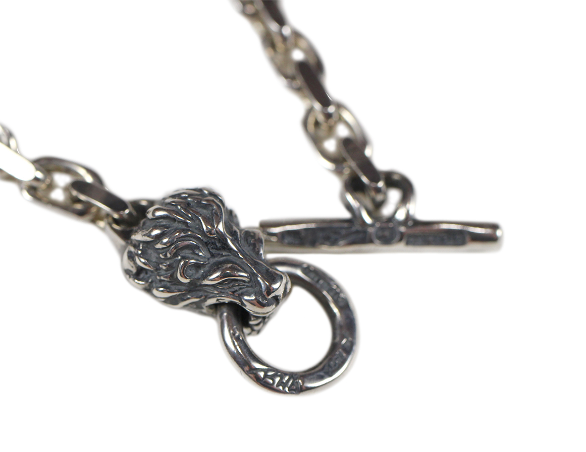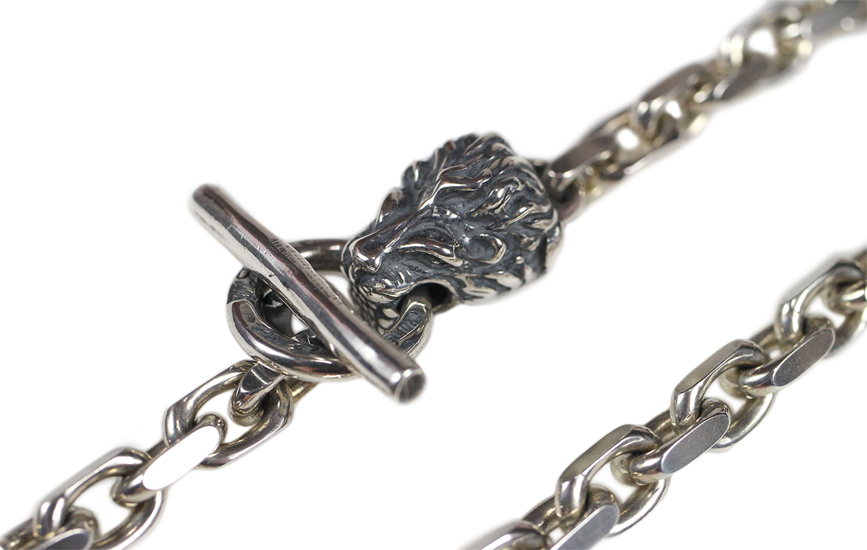 Bill Wall Leather [-Square Chain Link Necklace w/ Lion Head 18"-]