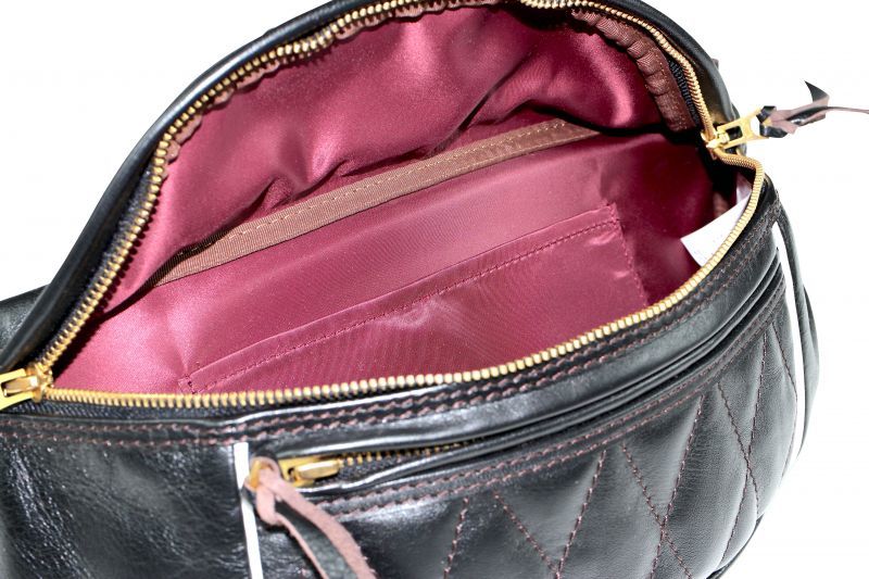 バックルはWESTRIDEオリジナルになり経年変化が楽しめるように焼き付け塗装をしています。BAGの裏地は高級感あるキュプラ素材。擦れなどにも強くなってます。ポケットの内側にはインナーポケットもあり使い勝手も考慮しています。ZIPPERの口も大きいので物の出し入れもしやすい作りになっています。