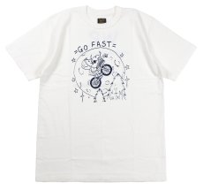 生地はORIGINAL HEAVY WEIGHT No.14 COTTON 100%。WESTRIDEのオリジナルTEEは、丸胴の吊り機で編み立てる→サイドを割ってダブルシームで縫製→内側サイドの縫い代をカット→ネックはトリプルバインダー。と非常に手間のかかる仕上げとなっている。この工程により、丸胴に見られるヨジレなどの型崩れもなく、肌触りも良好となる。製品として安定した品質を実現している。肌着としての側面も持つTEEだけに、プリント柄だけでなく、品質そのものに拘って生産しています。