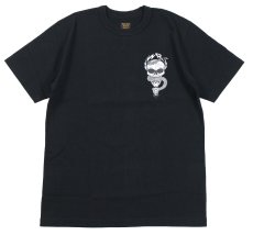 旧さと新鮮さが同居するSKULL & SNAKEデザイン。60年代VINTAGEまで遡ることなく、80‐90年代の端境期に存在したストリート感あるグラフィックのイメージで描き下ろし、OFFとGRY以外のカラーボディーには敢えて、ベタッとしたプリントを。30年前の「新しい古着」を思わせるクールな新作。