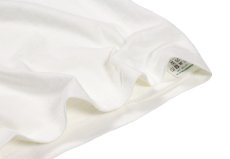 「吊り編み機より希少」といわれる旧式のローゲージ編み機で編まれたウエアハウスの定番ボディを使用。12番のムラ糸で独特の陰影が出るように編まれたこの生地はシャドウボーダーと呼ばれており、無地でありながらうっすらと横段のようなムラが浮かびます。極端に前下がりの現代的なネックラインではなく、フライスにパイピングを噛ませる事で強度を保ちながら、着込むほどにネックラインが緩み自然な前下がりが生じます。ファッションの最も基本的なアイテムであると同時に奥深いTシャツはWRの30年をアメカジライクに表現する01とWESTRIDE最初期グラフィックのハードな02との2柄で展開。インクやプリントもすべてWAREHOUSE生産となるため、WESTRIDEとは異なるテイストを楽しんで頂けるでしょう。
