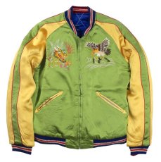 テーラー東洋のコレクションの中でも特に厳選した逸品をディテールにこだわり再現するのが、このスペシャルエディション。横振り刺繍で緻密に描かれた図案はもとより、アセテート生地の打ち込みを調整してヴィンテージと遜色なく仕上げ、ウールリブも旧式の横編み機を使用して1着ずつ編み上げている。リバーシブル仕様のファスナーについても50年以上前のファスニング機械を再稼働させ、当時と同じ手曲げのものを再現。テーラー東洋の前身である港商(こうしょう)商会のラベルを使い、ヴィンテージスカジャンの最盛期を彷彿とさせる仕上がりとなっている。