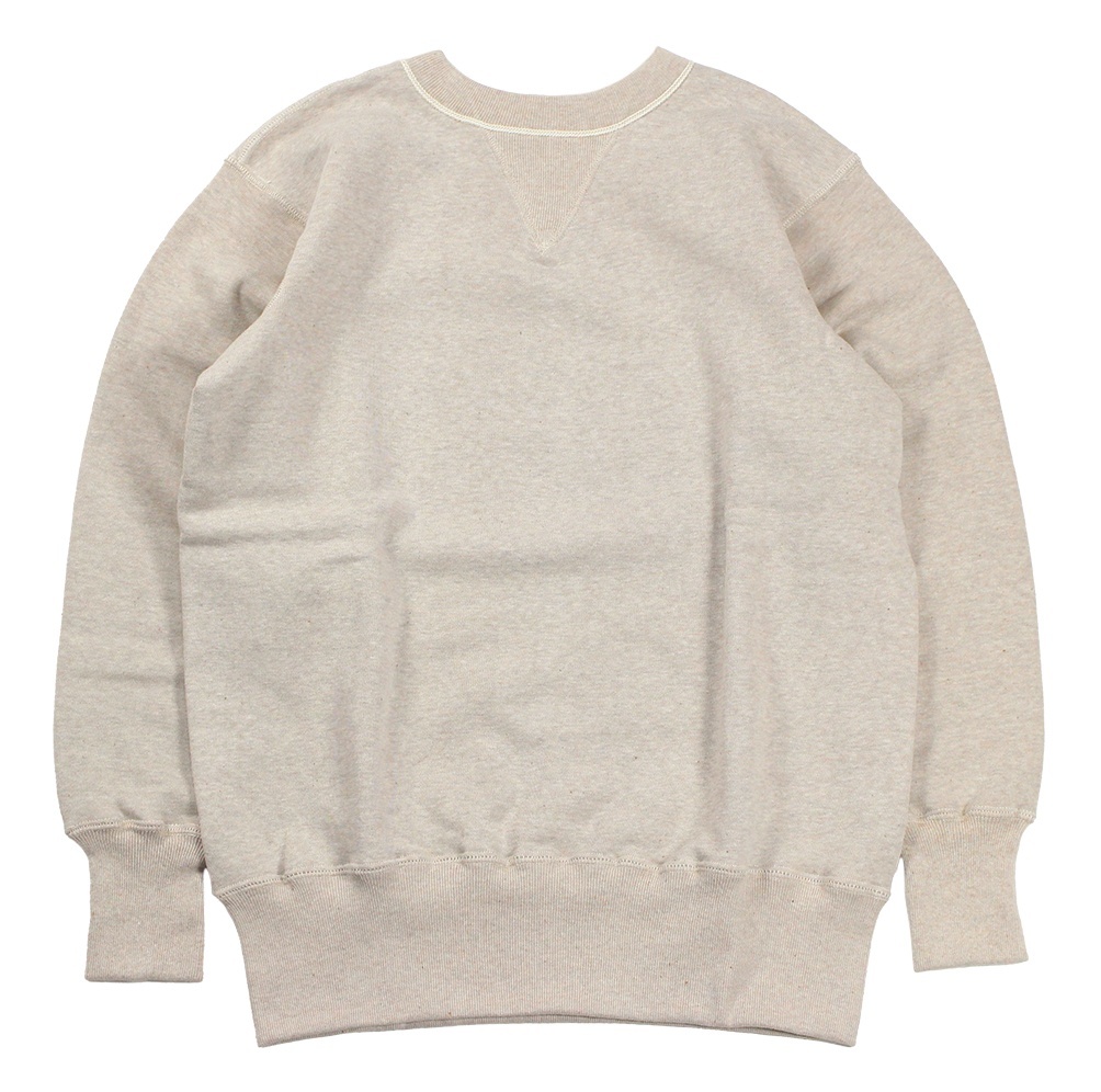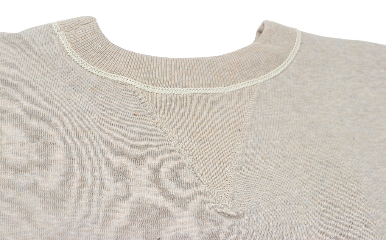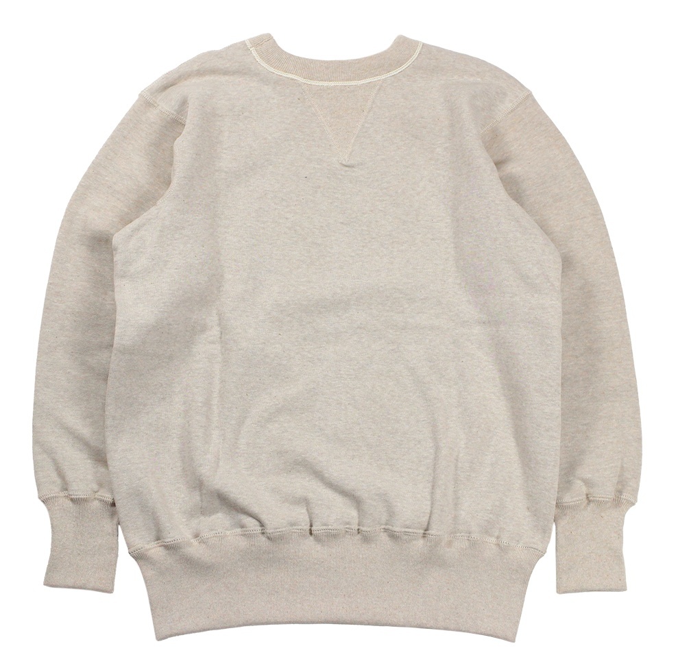 20年以上仕様を変更していない定番の吊り編みスウェットです。二本ステッチの間から粗めのロック糸が見える仕様はヴィンテージでしか見られないディテールですが、ミシンを改良することで実現させました。かつてコットンフリースラインドと呼ばれた裏起毛も、筒状のまま起毛をかけて再現しています。
