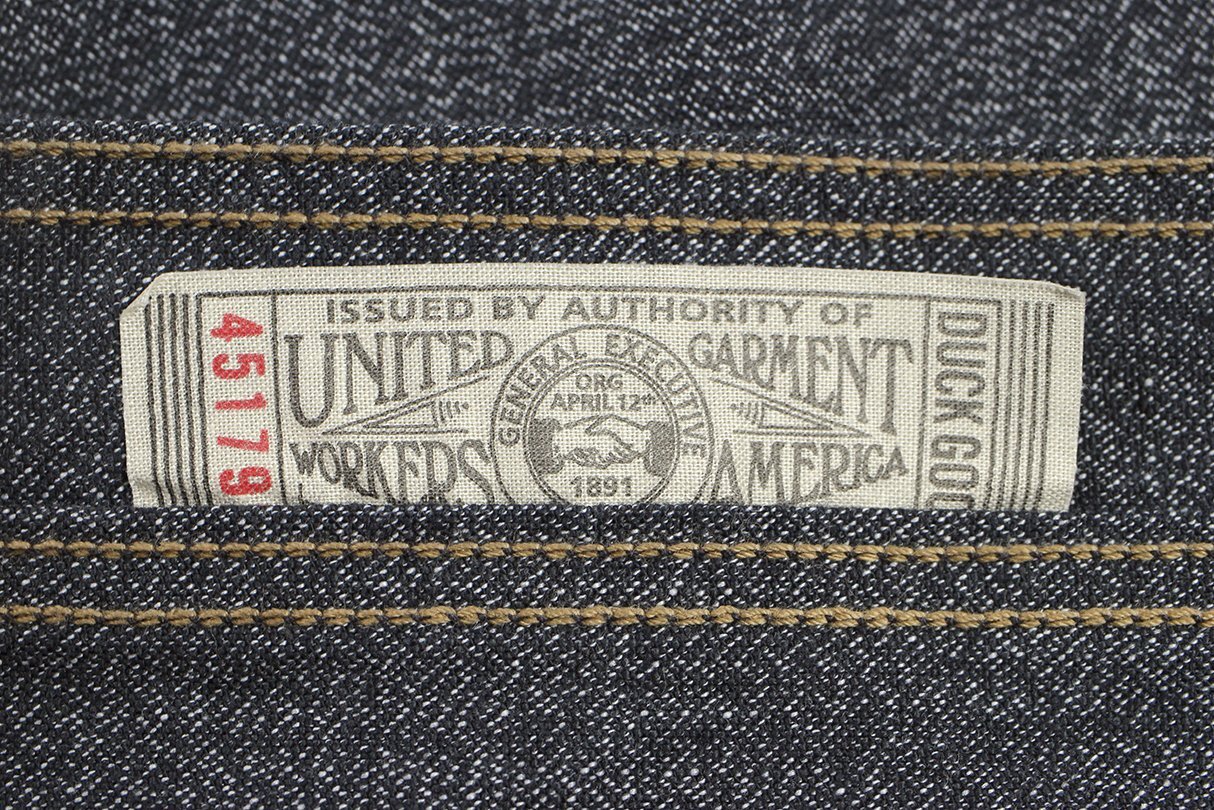 左ポケットはペン挿し付き、衿はチンストラップ付き、裾は空環仕上げ、フロント裾の裏にはユニオン・チケットが縫い付けてあります。