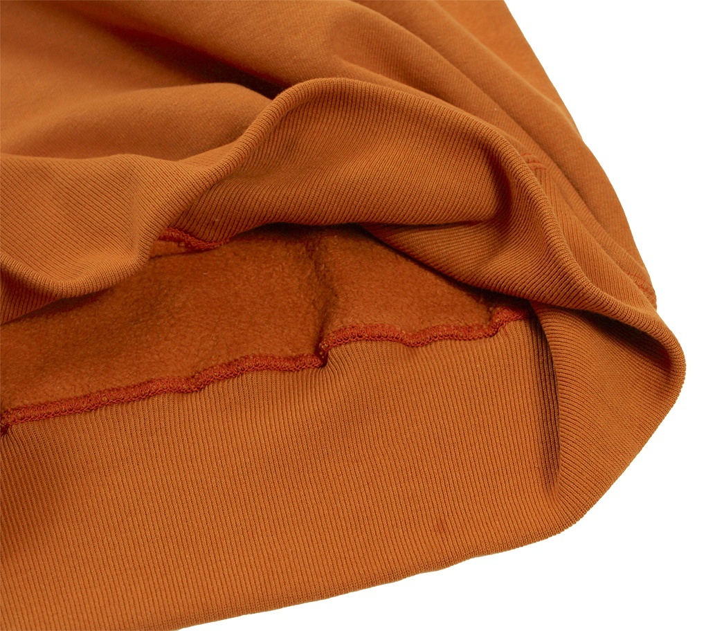 20年以上仕様を変更していない定番の吊り編みスウェットです。二本ステッチの間から粗めのロック糸が見える仕様はヴィンテージでしか見られないディテールですが、ミシンを改良することで実現させました。かつてコットンフリースラインドと呼ばれた裏起毛も、筒状のまま起毛をかけて再現しています。