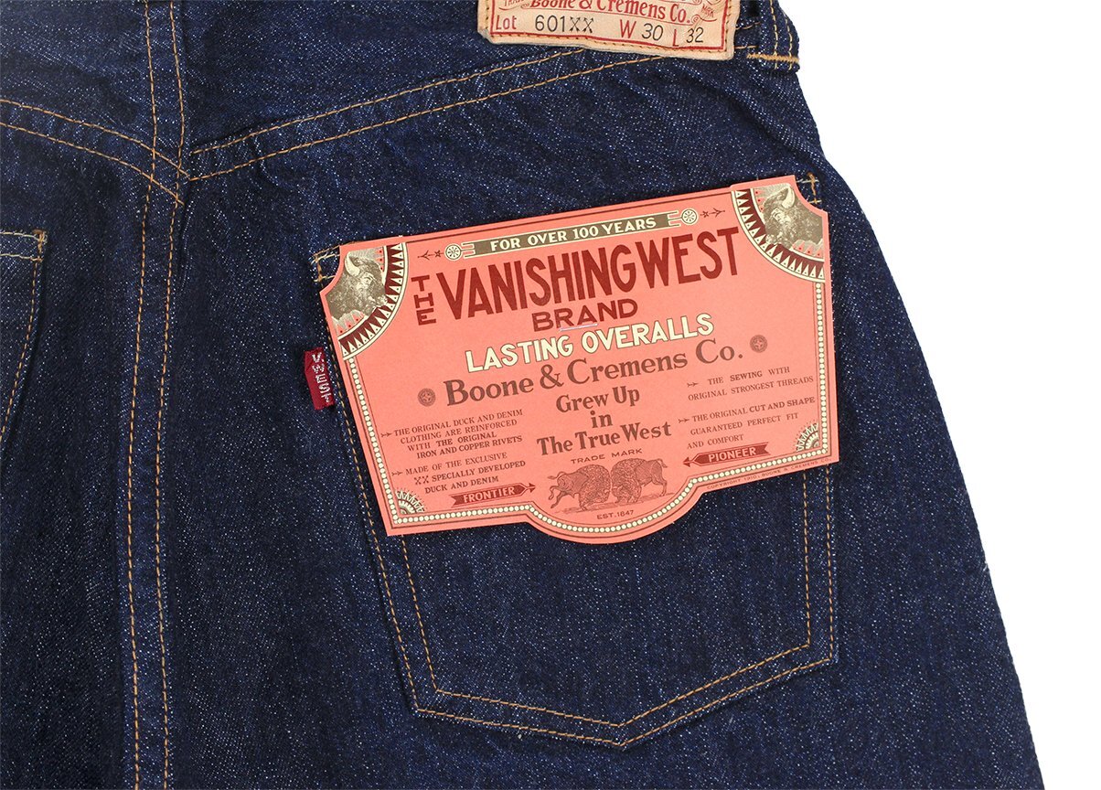 ポケットには両面に”V.WEST”の文字が入った赤タブが付きます。