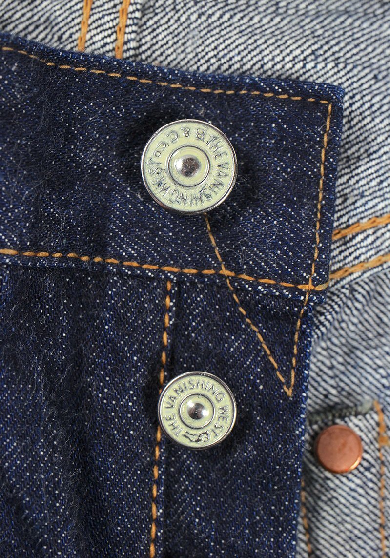 14オンスの当時の雰囲気を再現した色落ちとやや毛羽立ち感のあるデニムです。