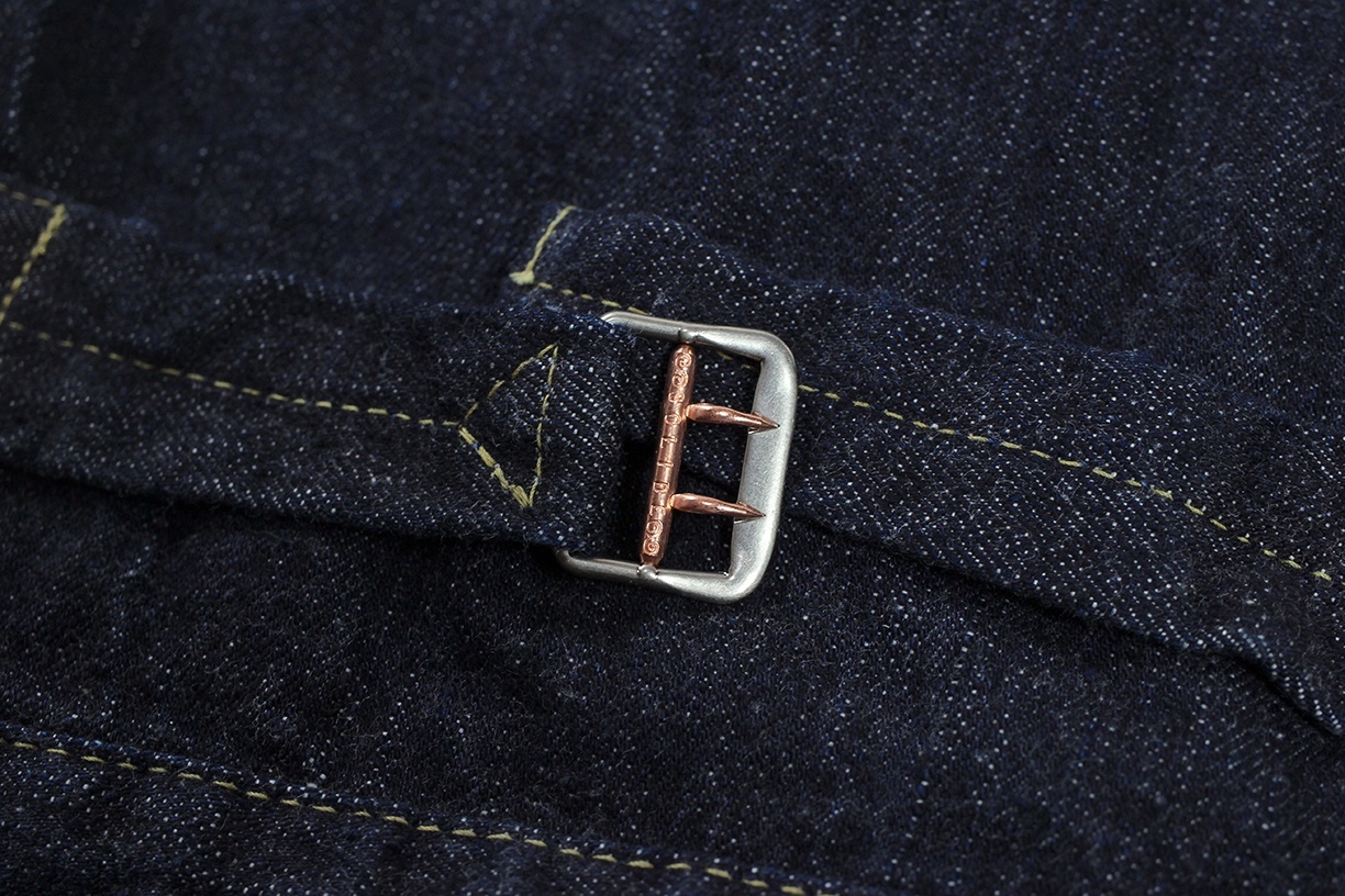 オンスダウンは耐久性を損なう為、戦時下におけるジーンズー作業服の頑丈さを貫いたのだ。縫製にも太番手糸と技量・工程を維持し、高品質と強い耐久性を目指した。