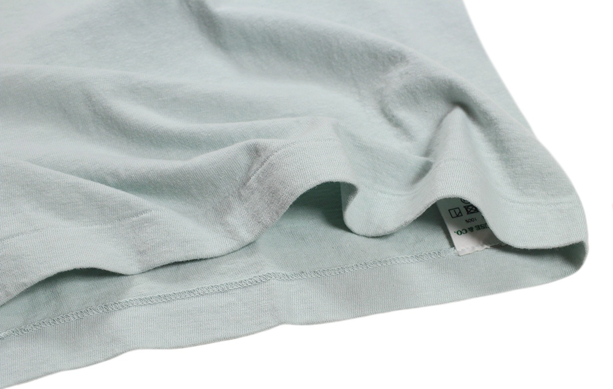 適度に緩んだネックライン、ボディのフェード感や、プリントの褪色、掠れ、起毛感など、何年も着こまれ、洗いこまれた古着のTシャツをイメージして製作しています。