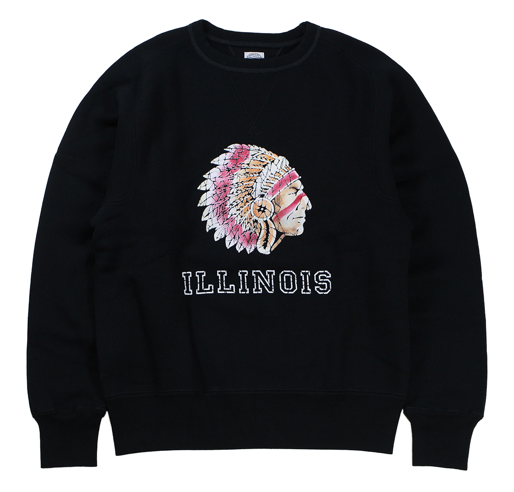 ["ILLINOIS Flocky Pt Sweat" #AB12201 Black size.M,L,XL]
