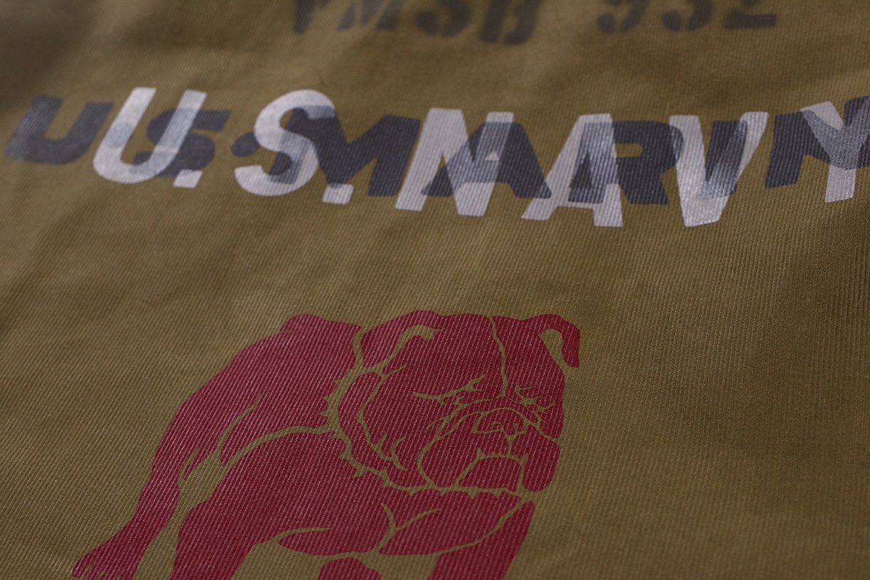 リフレクタープリントの"U.S. NAVY"の上に染込みプリントの"U・S・MARINE"が塗りつぶすようにプリントされています。