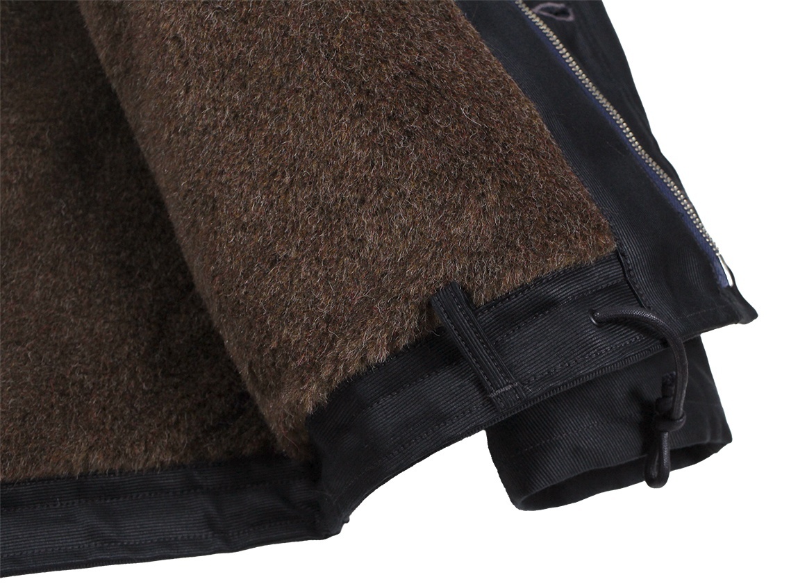 ジャングルクロスとアルパカライニングの間にコットンフランネルを挟んだ防寒性抜群の三層構造です。