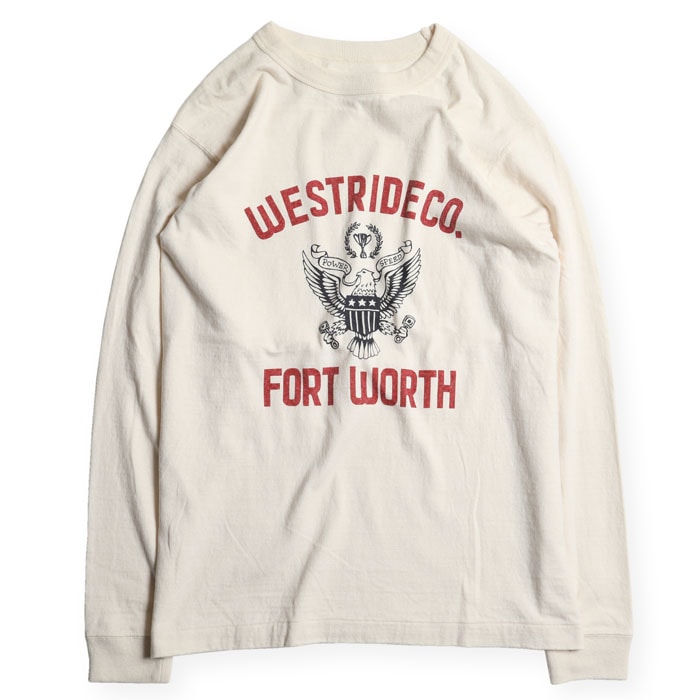 VINTAGEのクラシカルなバイカーTEEを彷彿させるこちらにはトロフィーとイーグルが描かれる。FORT WORTHのレース会場で販売されていたメモリアルTEEという仮想をイメージモチーフとした威風堂々の新作グラフィック。