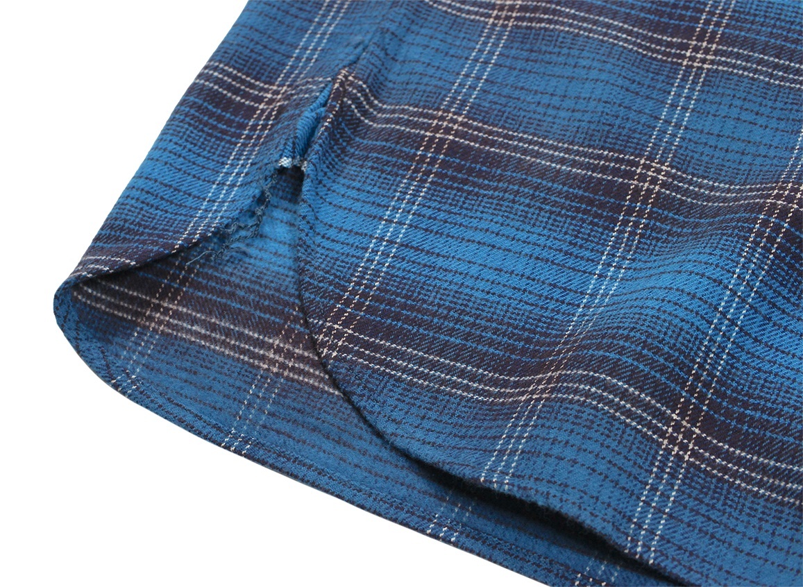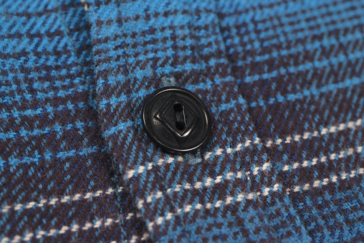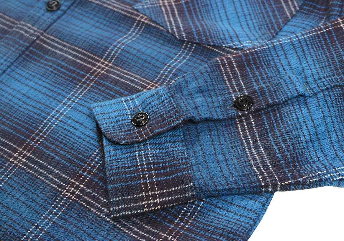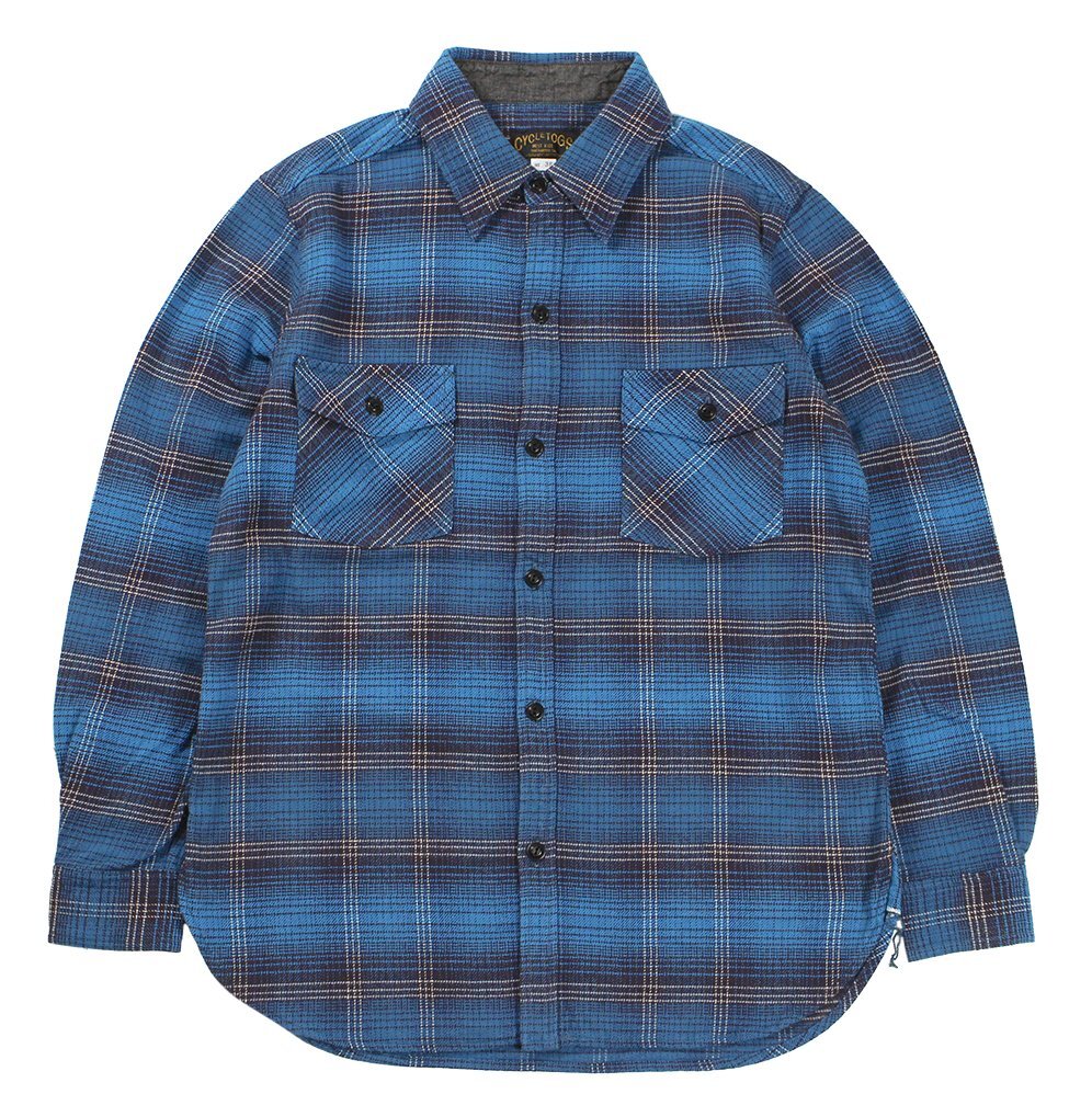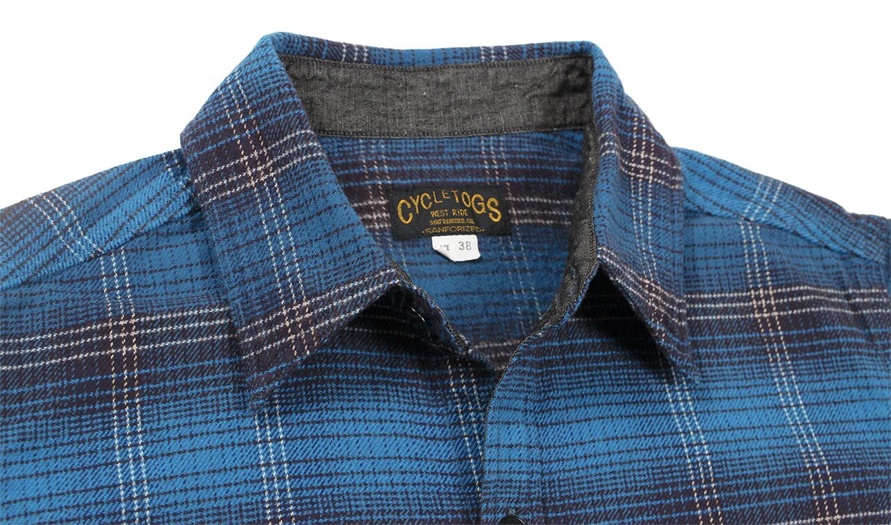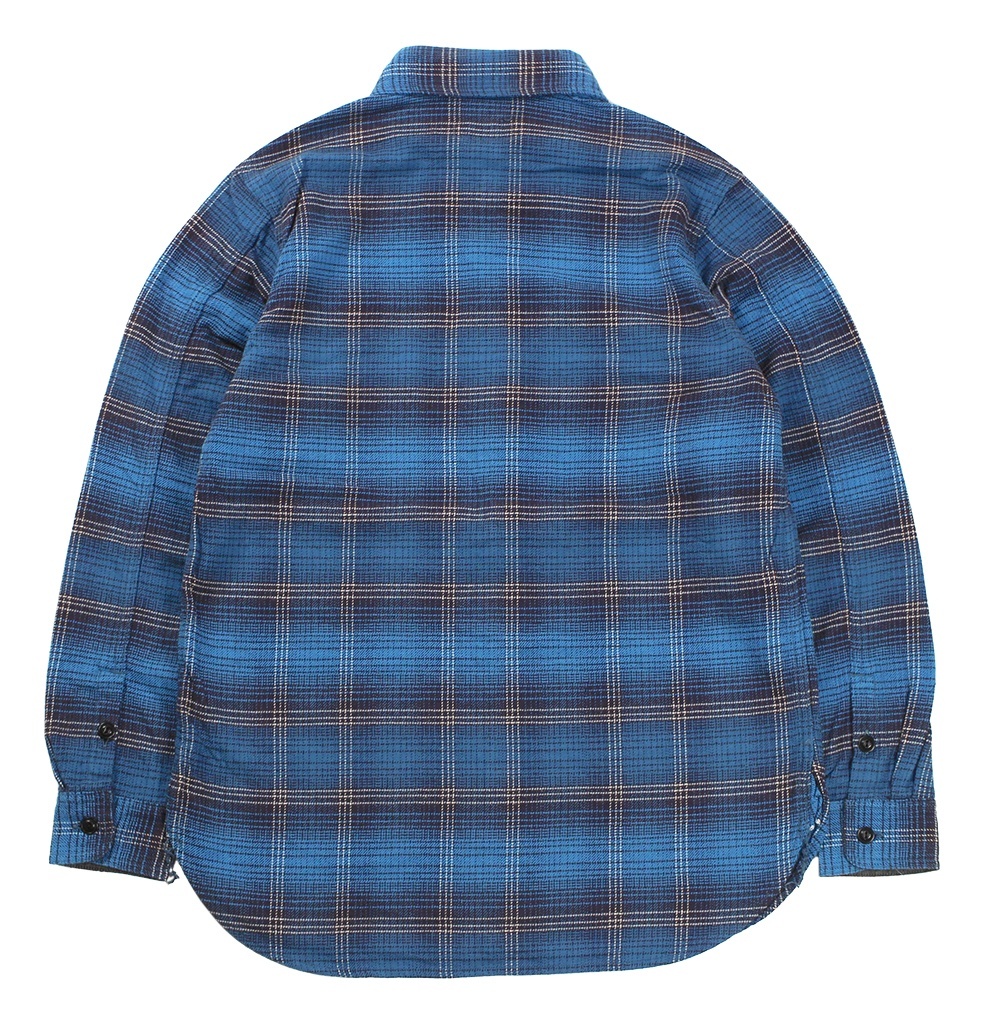BLUE CHECK: COTTON100% 経糸緯糸に20番双糸を用いたオンブレチェック柄。トーンを変えた3色のBIUE糸によって色の変化を加えた完全オリジナルのミディアムウェイトネル。