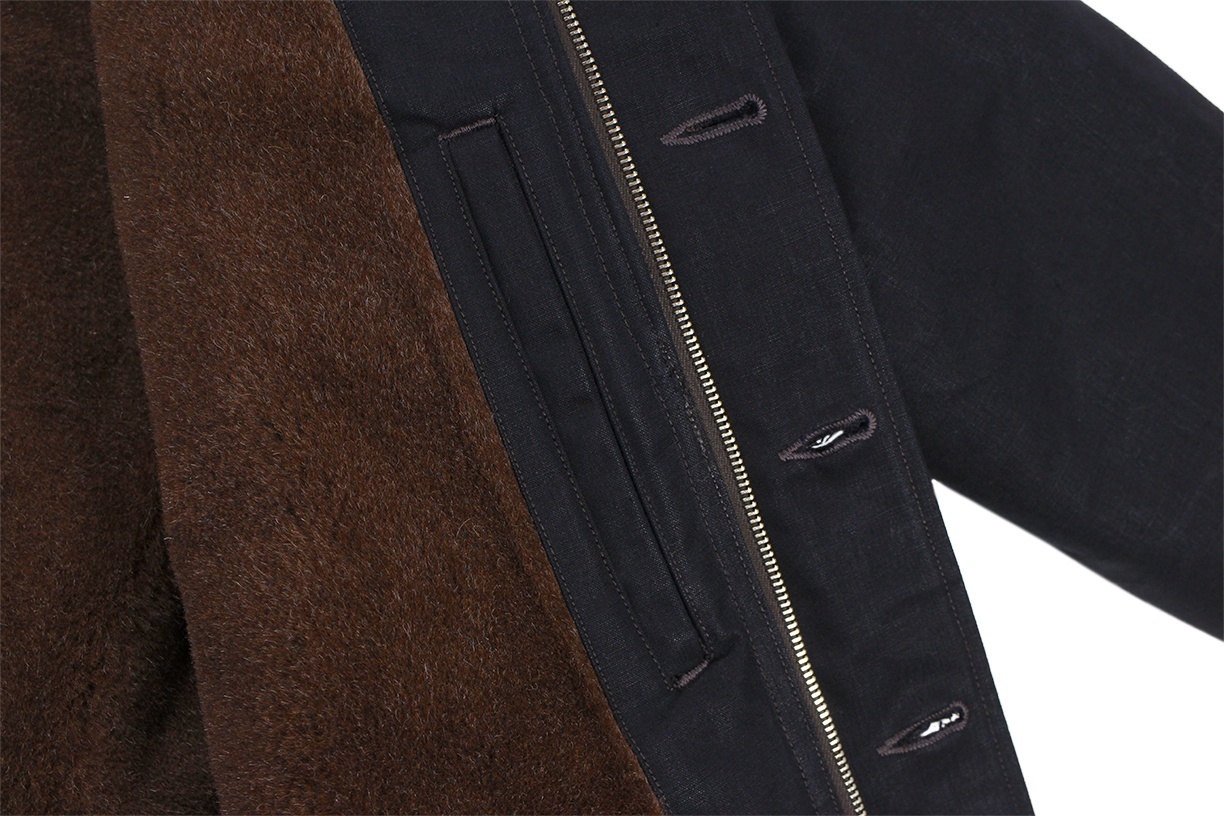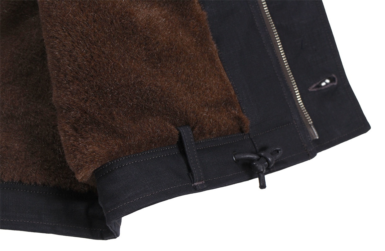 コットンダックとアルパカ(100%)ライニングの間にコットンフランネルを挟んだ、防寒性抜群の三層構造です。
