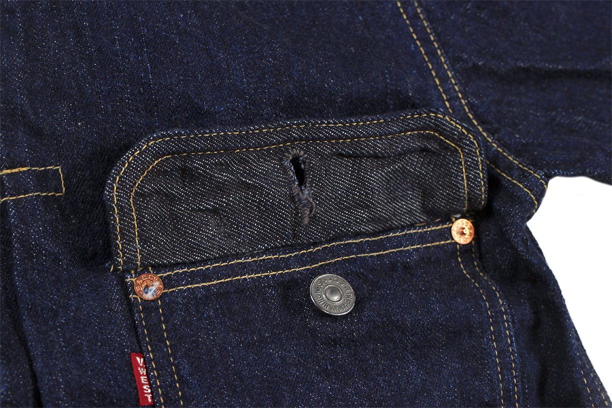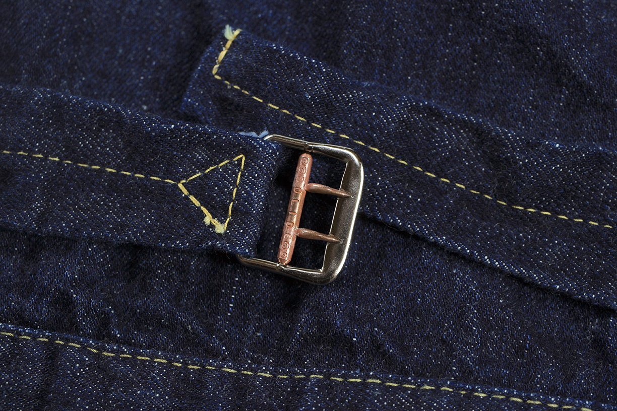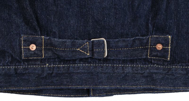 当時の雰囲気を再現した色落ちとやや毛羽立ち感のあるデニムで、40年代後半に見られる青黒とした濃紺色が特徴となります。