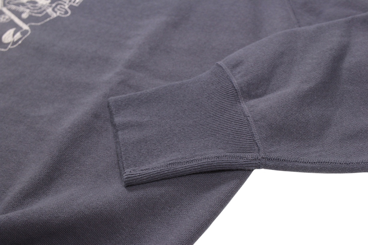 着古されたヴィンテージスウェットを徹底的に研究して再現されたセカンドハンドシリーズのスウェットシャツです。洗濯と乾燥を繰り返すことで変化が生まれた裏起毛、そして褪色でしか表現できないような絶妙なフェードカラーは、「新品の状態で古着の風合い」という「セコハン」そのものです。ややゆとりのある身幅の設定により、着用時の独特のドレープ感もお楽しみいただけます。