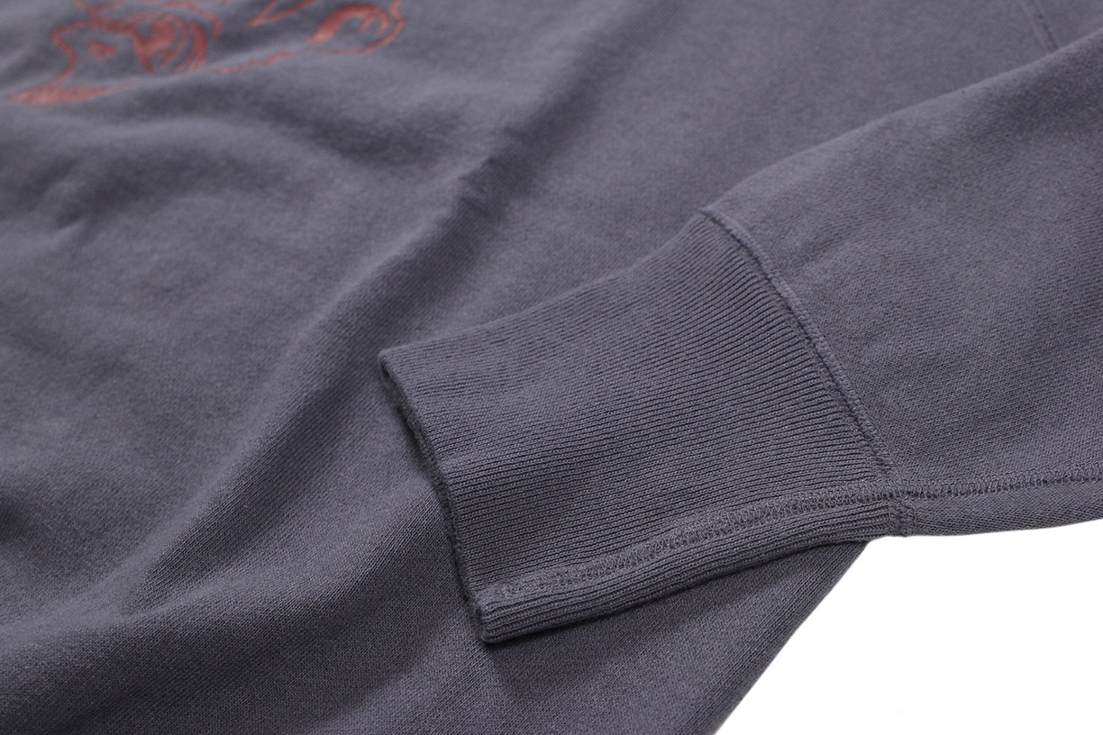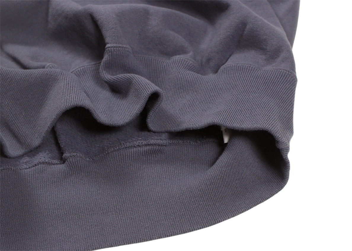 着古されたヴィンテージスウェットを徹底的に研究して再現されたセカンドハンドシリーズのスウェットシャツです。洗濯と乾燥を繰り返すことで変化が生まれた裏起毛、そして褪色でしか表現できないような絶妙なフェードカラーは、「新品の状態で古着の風合い」という「セコハン」そのものです。ややゆとりのある身幅の設定により、着用時の独特のドレープ感もお楽しみいただけます。