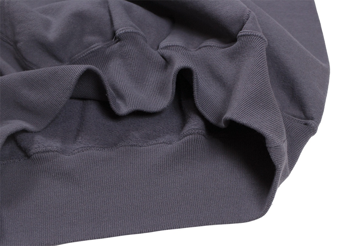 洗濯と乾燥を繰り返すことで変化が生まれた裏起毛、そして褪色でしか表現できないような絶妙なフェードカラーは、「新品の状態で古着の風合い」という「セコハン」そのものです。