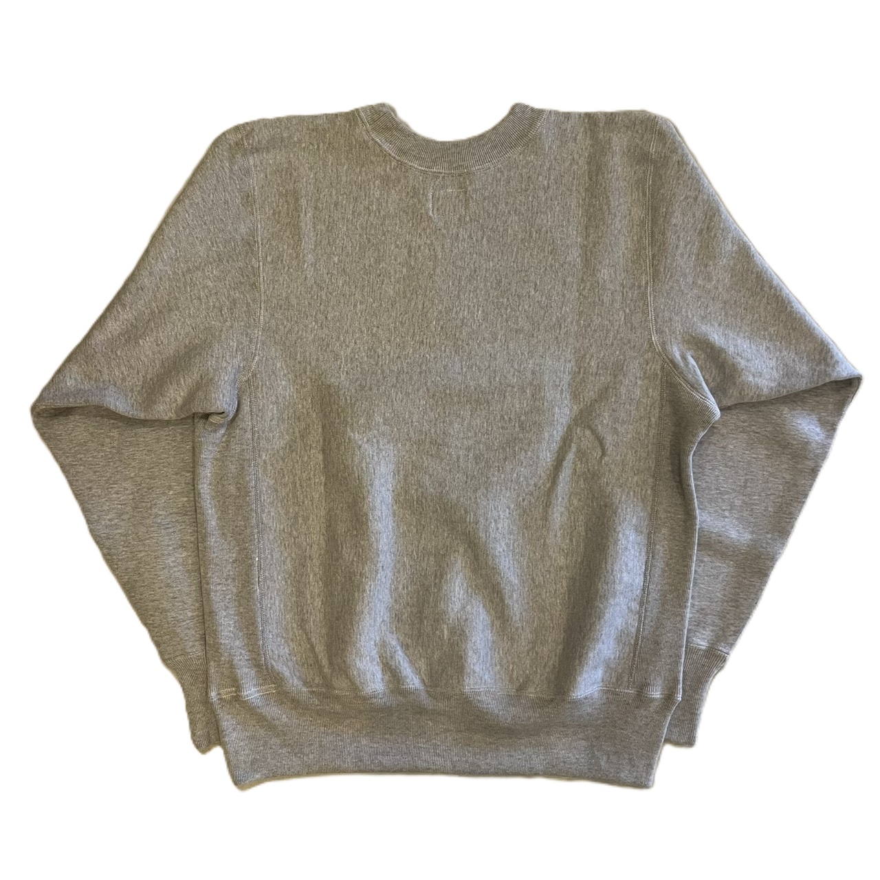 このスウェットシャツを手に取ってみると、まずは、その「重さ」に驚くことでしょう。1960年代のRWタイプを再現するために試行錯誤を繰り返した新開発のスウェットシャツ。縮みを軽減するために生地をヨコ使いした画期的なこのアスレチックスウェットは、サイドのパネル使いなどに目をとられがちであるが、その特性は「糸」にあります。徹底した度詰めで編まれたその生地は、硬いが弾性があり、重いがふわりとした柔らかさがあります。そしてウエアハウスがこだわるのは生地の「目」です。「生地の目が立つ」というのは、通常のスウェットでは、「タテ筋」だが、こちらRWモデルでは「ヨコ筋」です。目を立たせるために、糸の番手はもちろん、度の詰め方など、何度もその組み合わせを変えました。そしてたどり着いたのが、スウェットとしては珍しい「引きそろえ」である。通常はそれぞれ1本の糸を表、中、裏に組み合わせて編むスウェットであるが、引きそろえにすることで度を詰めやすくなりました。さらに吊り編み機の特性により、生地の弾性を保ったまま硬く、表面の目を立たせることができるようになったのです。歴史上、後発に採用されるシンカー編み機では、同じ糸の規格でもってしても、硬くなりすぎてしまい、編上がりの違いは歴然としているといいます。出来上がった生地の「重さ」は、染色の際、また縫製においても熟練の作業を要します。染色の際には通常よりも負荷がかかるし、縫製でも軽いニットウェアのようにはいきません。生地、染色、縫製、すべての工程においての協力による「バトンリレー」が、このRWタイプのスウェットの「重み」なのです。そして、このRWモデルのオリジナルについても後述しておきます。驚くべきことに、「タタキタグ」と通称される60年代のヴィンテージの、生地の破れた部分を解析すると、「引きそろえ」の糸が露出していたというのです。アスレチックウェアとして、牧歌的でありながらも妥協することなく開発を試みた先駆者の精神は、「限りなきディテールの追求」によってこそ発掘されるのです。