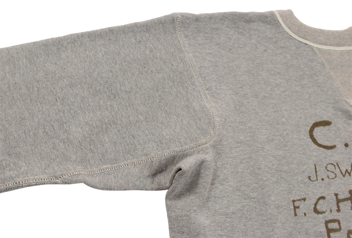 20年以上仕様を変更していない定番の吊り編みスウェットです。二本ステッチの間から粗めのロック糸が見える仕様はヴィンテージでしか見られないディテールですが、ミシンを改良することで実現させました。かつてコットンフリースラインドと呼ばれた裏起毛も、筒状のまま起毛をかけて再現しています。