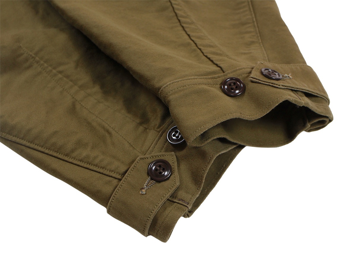 生地はコットン・モールスキンを使用し、表面を毛焼きしてクリアにした滑らかな肌触りになります。