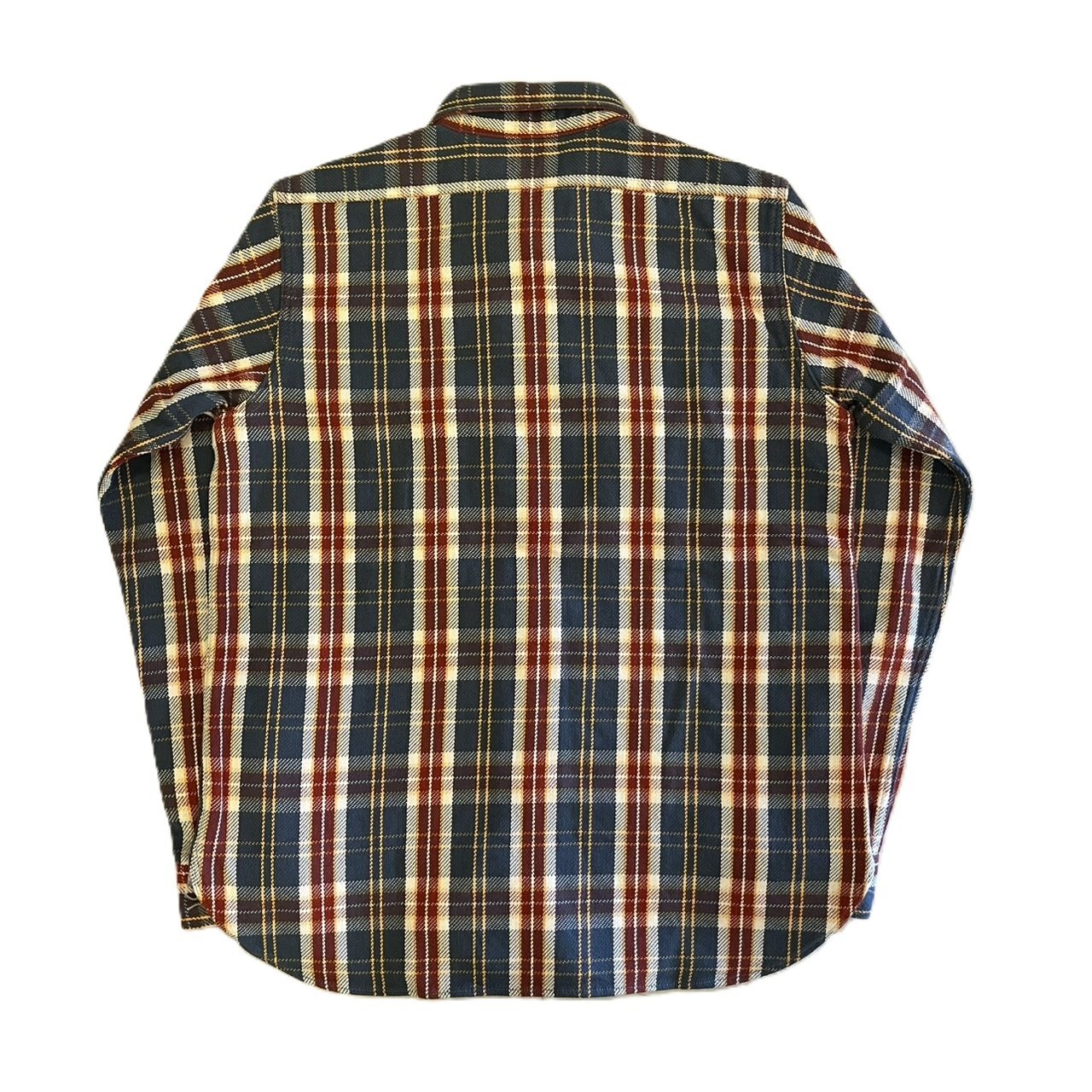 ウエアハウスのネルシャツは、生地に日本では限られた地域にしか残っていない力織機を使用して生地を作っています。フランネルの生地を作るために力織機を使う理由は単なる「耳付きのネル生地」を作りたいという理由からではありません、あくまでもセルビッチは副産物なのです。その目的は、力織機を使用することでムラ糸の持つ風合いを損なうことなく、生地に仕上げることができるからです。デニムと同じで、ヴィンテージネルシャツの生地を織っていた糸は不均一なムラ糸であった時代です。その糸を革新織機で強いテンションをかけて織ると違う生地になってしまう。せっかくの糸本来の性質が損なわれてしまうのです。旧式の力織機で織る事で、糸本来が持つ凹凸を損なうことなく生地を織ることが出来ます。ネルシャツを織る力織機はデニムと同じ綾織りの織機です。ネルシャツは柄を構成する必要があるため、多色の糸を織れる仕組みになっています。タテ糸は柄に合わせて複雑に上下移動し、その間を違う色のヨコ糸を持ったシャトルが次々に入れ替わり往復に移動します。こうして力織機らしい適度なテンションで織られたフランネルは、それぞれの糸本来が持っているムラを損なうことなく生地となるのです。生地になったネル生地は、当時の製法に倣って生地の裏に起毛加工を施しています。起毛をかけることで柄に柔らかい表情が生まれます。さらに起毛をかけることで生地に膨らみを生み、力織機ならではの肌触りをさらに柔らかなものに昇華させることができます。このように、力織機で織られたネルは、糸そのものから再現することでこそ生まれる風合いを持っています。それを見分ける最も簡潔な方法がセルビッチ(耳)の有無であり、1960年代頃までのヴィンテージネルシャツと同じように、ウエアハウスでもマチ部分にセルビッチを使用しているのです。