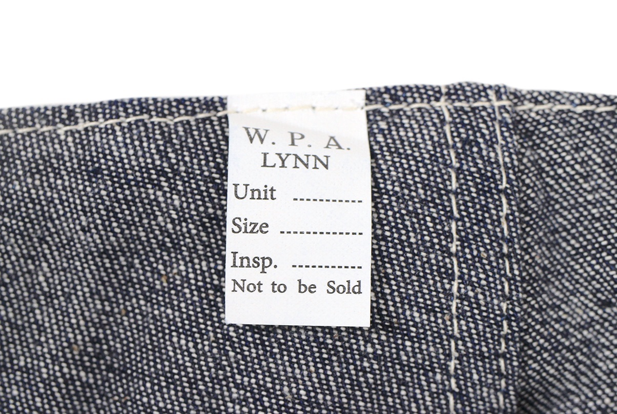 WPA の大規模なプログラムのなかでは、労働に従事するブルーカラーのワークウエアが製造された。それは「SEWING ROOM」と呼ばれる縫製室で作られ、衣料には「Made by W.P.A. SEWING ROOMS, NOT TO BE SOLD」(雇用促進局縫製室製品、売り物に非ず)と記載されたタグが付けられた。縫製室のあった州では各州で、裁縫師たちは自分の仕事に大きな誇りを持ち「W.P.A.」のイニシャルは「We Patch Anything」(なんでも縫う)の略であると宣言。時には軍隊の衣料を修理し、アレンジして新しい衣服を作り、それらは「WPA」の労働者が着用した。そんな「WPA」の衣料は、デザインと縫製仕様が実に興味深い。デザインのベースはミリタリーワークウエアで、多くのアレンジが施されていること。縫製仕様は「SEWING ROOM」の名の通り、当時ワークウエアで主流だった「還縫い」ではなく「本縫い」が多用されていることである。第二次世界大戦によって工場に軍需が生まれるまでの、牧歌的なぬくもりがそこにはある。