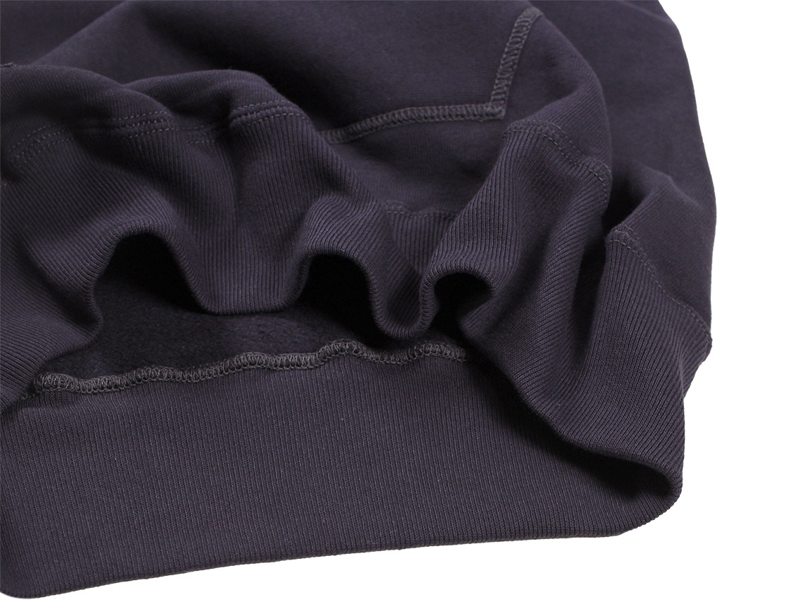 「後付け」と呼ばれるフード付きスウェットの仕様は言うまでもなくクルーネックのスウェットのネックラインに「後から」フードが縫い付けられているものです。