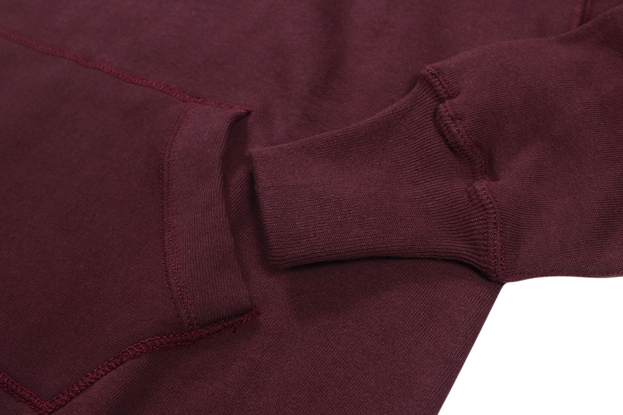 「後付け」と呼ばれるフード付きスウェットの仕様は言うまでもなくクルーネックのスウェットのネックラインに「後から」フードが縫い付けられているものです。