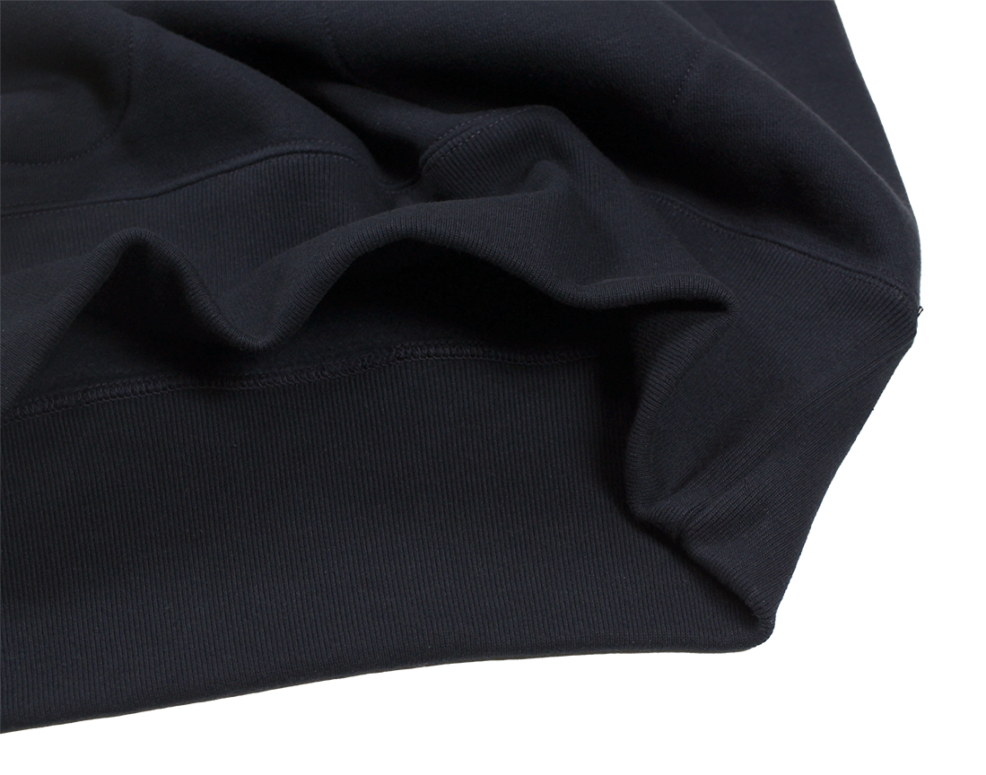 こちらは通常のMEDIUM WEIGHT素材と比べ1.4〜1.5倍の重量となり、表面はドライで固く粗野な質感を持ちながらも、裏面は毛足が長く深い起毛感を兼ね備えています。