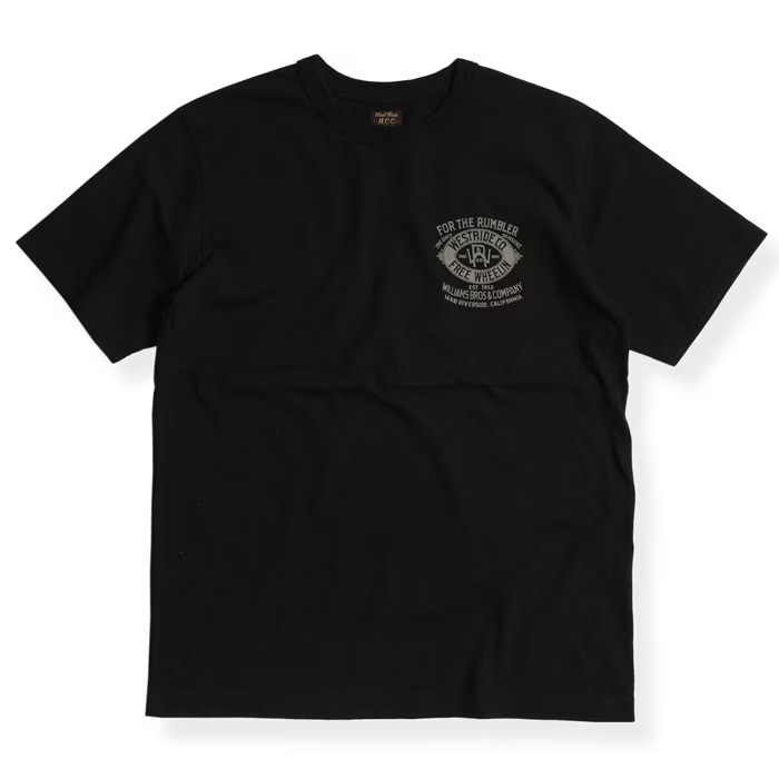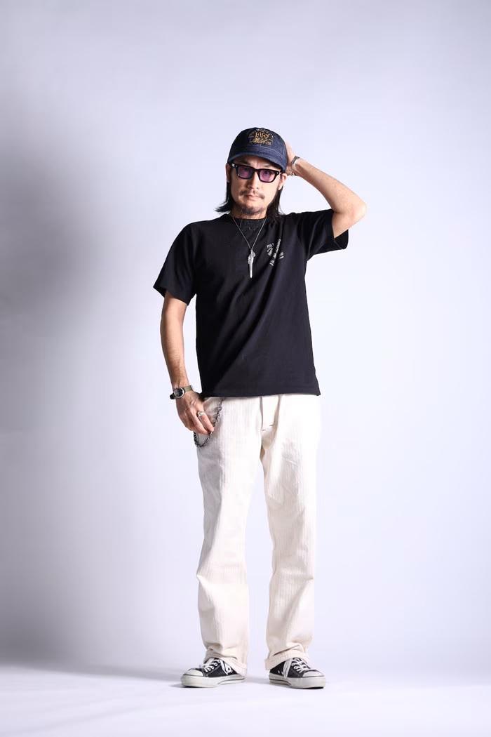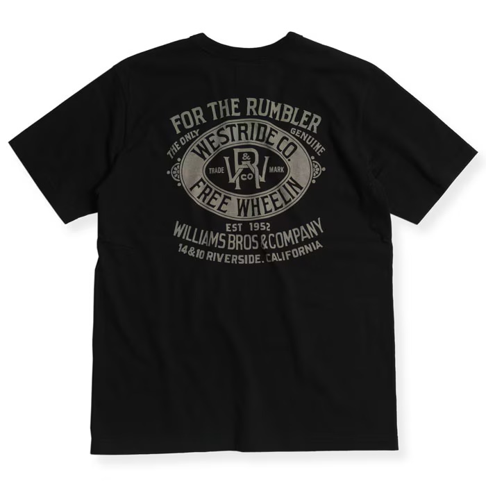 旧くは「4輪の馬車=音を立てて前に進むもの」を意味するRUMBLERSのワード。そんな人々の為の当時の衣料メーカーの旧き良きアドバタイズ風イメージでまとめ上げた、PSYCHO氏描き下ろしとなる今季の新作メイングラフィック。WILLIAMS BROSの名前でシーズンテーマに繋がる「JAMBALAYA」のカントリー・シンガーと、自由への「解放」を表現するシンプルながら威風堂々とした存在感とストーリー性が溢れる今季のメインTEE。