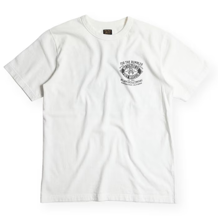 縫製:WESTRIDEのオリジナルTEEは、丸胴の吊り機で編み立てる→サイドを割ってダブルシームで縫製→内側サイドの縫い代をカット→ネックはトリプルバインダー。と非常に手間のかかる仕上げとなっている。この工程により、丸胴に見られるヨジレなどの型崩れもなく、肌触りも良好となる。肌着としての側面も持つTEEだけに、プリント柄だけでなく、品質そのものに拘って生産しています。
