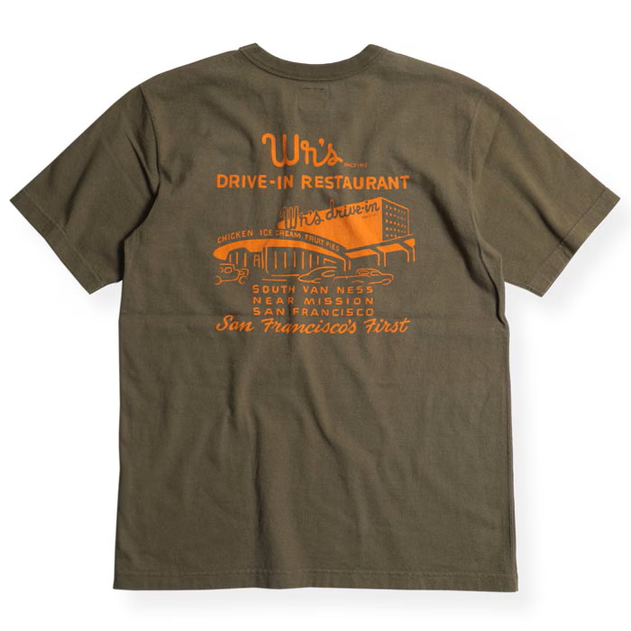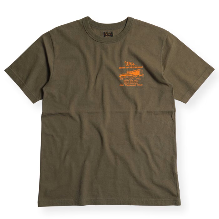 縫製:WESTRIDEのオリジナルTEEは、丸胴の吊り機で編み立てる→サイドを割ってダブルシームで縫製→内側サイドの縫い代をカット→ネックはトリプルバインダー。と非常に手間のかかる仕上げとなっている。この工程により、丸胴に見られるヨジレなどの型崩れもなく、肌触りも良好となる。肌着としての側面も持つTEEだけに、プリント柄だけでなく、品質そのものに拘って生産しています。